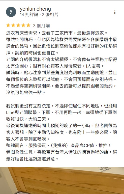 這一特色使得我們在南屯床墊工廠及商家的推薦名單中始終名列前茅,許多顧客選擇我們提供各種訂做床墊,也持續不斷的收穫好評回饋,更將自己的美好體驗推薦給親友,這是令我們最驕傲的事!